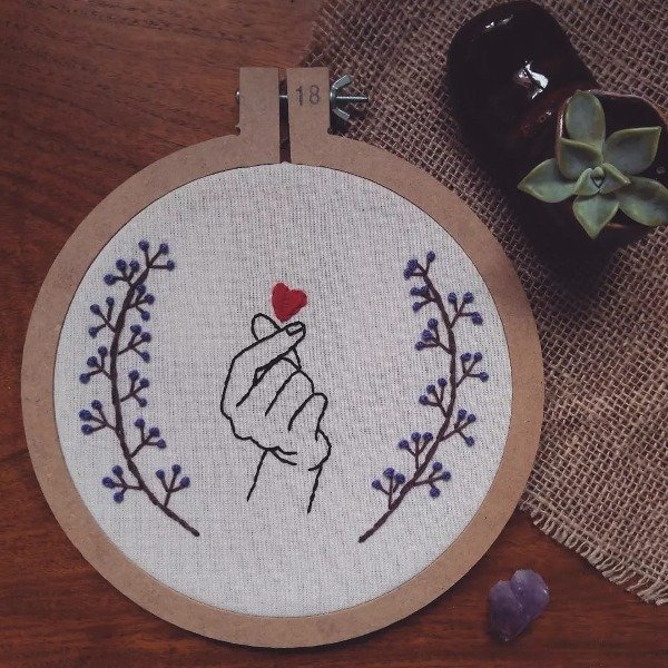 Bordado a mano sobre lienzo color crudo, con hilos de algodón.