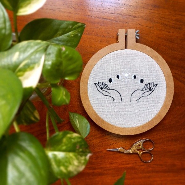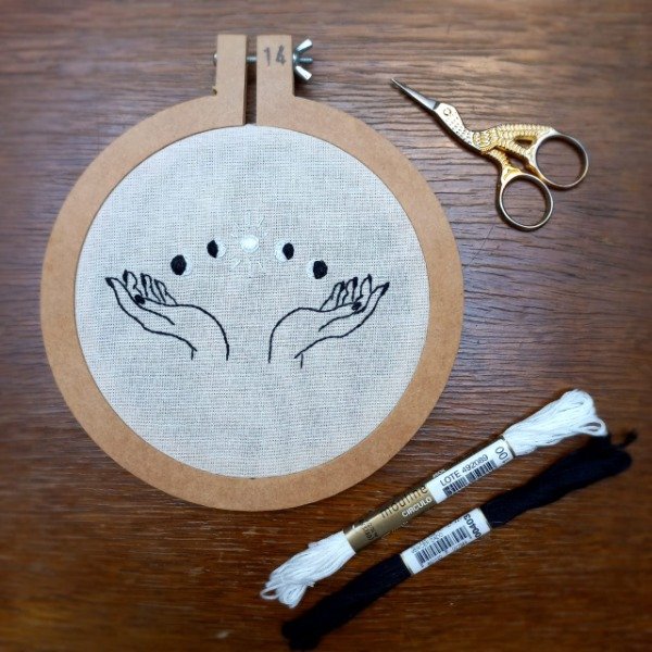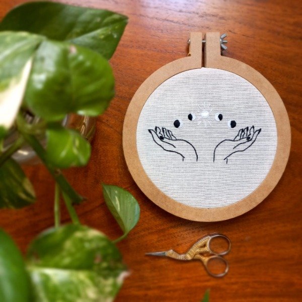 Bordado a mano sobre lienzo crudo, con hilos de algodón.