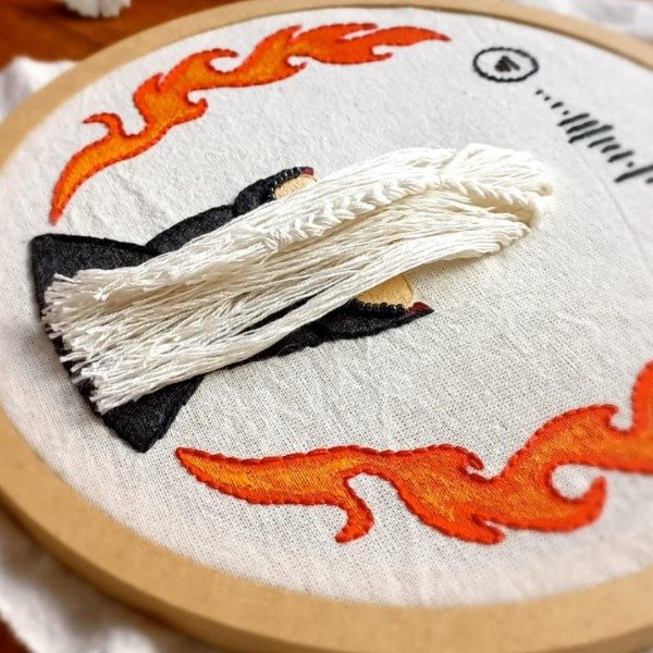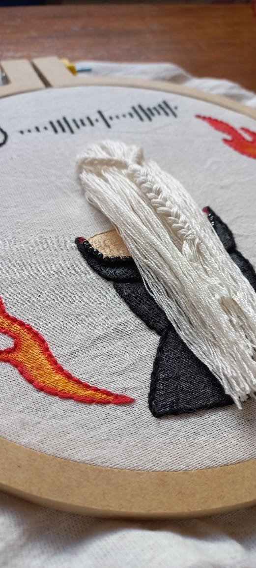 🧵 Detalle: técnica mixta de pintura y bordado.