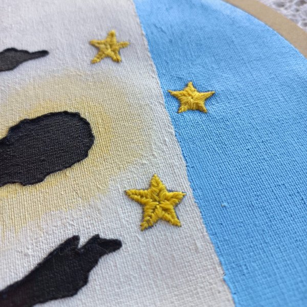 🧵 Detalle: técnica mixta de pintura y bordado.