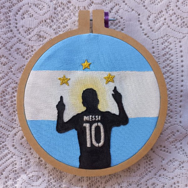 Bordado con diseño inspirado en Lionel Messi y Argentina Campeón del mundo 2022!