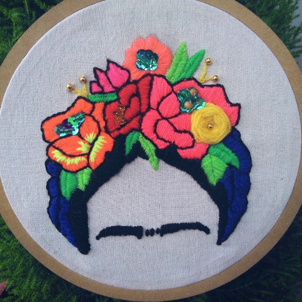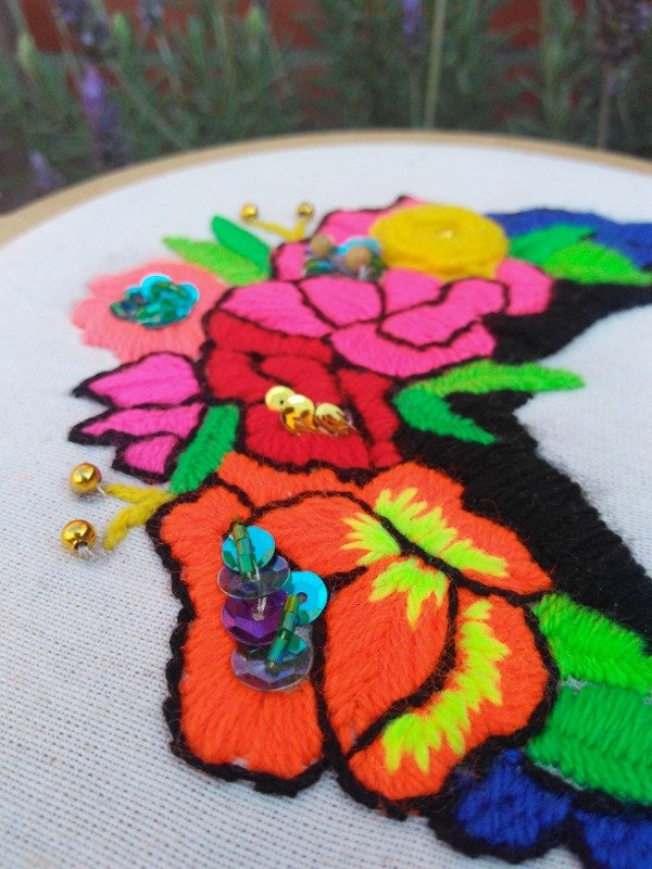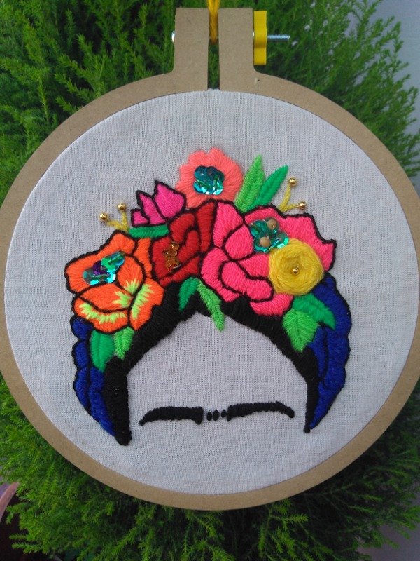 ACLARACIÓN IMPORTANTE: El trabajo es artesanal por lo tanto no hay dos bordados exactamente iguales, por ejemplo a veces puede variar el tono de los hilos o lanas, el color de la pintura, algún detalle del diseño, etc.