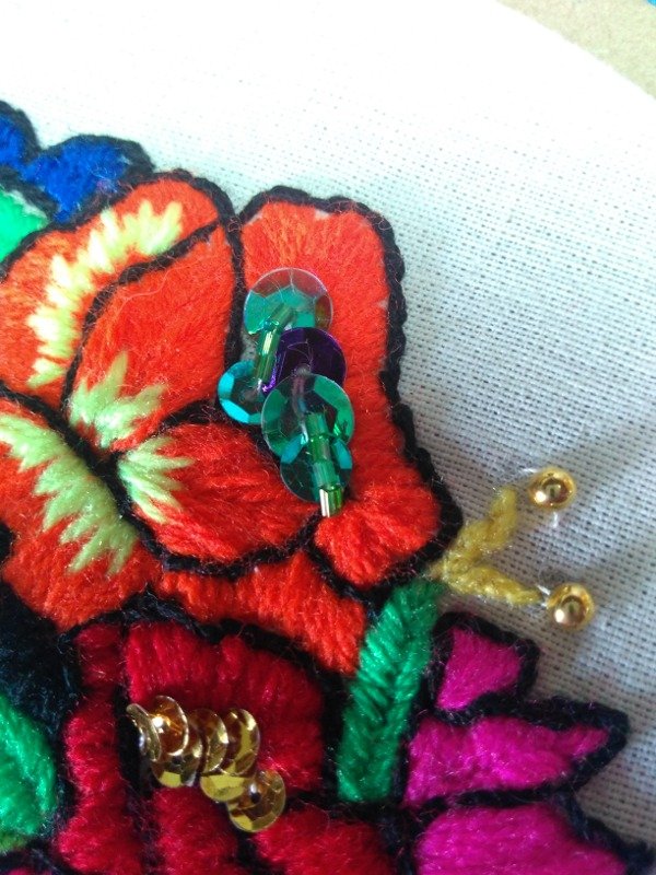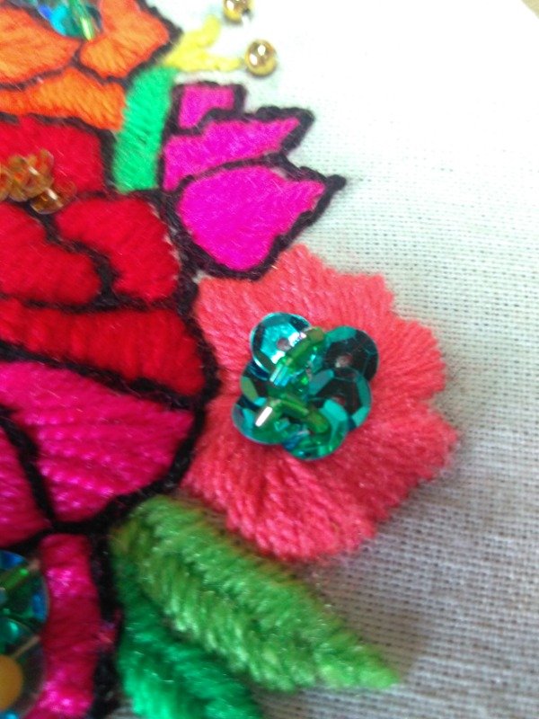 🧵 Detalle: tiene bordadas lentejuelas, mostacillas y canutillos.