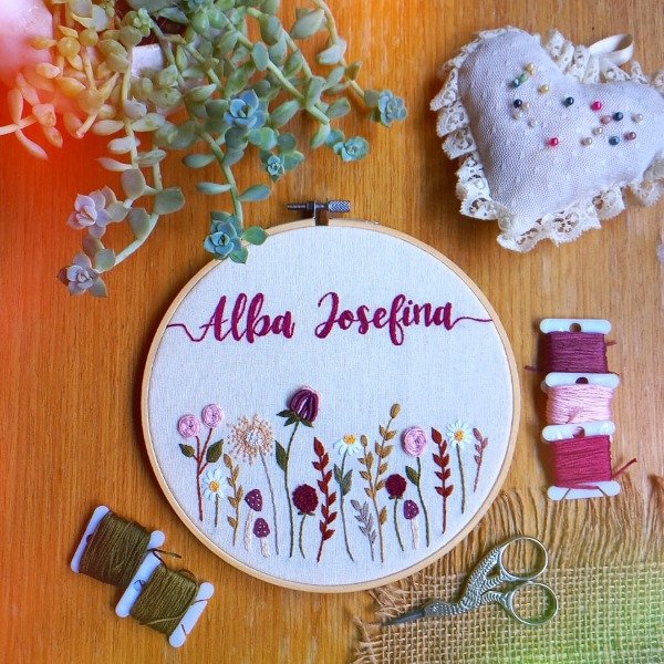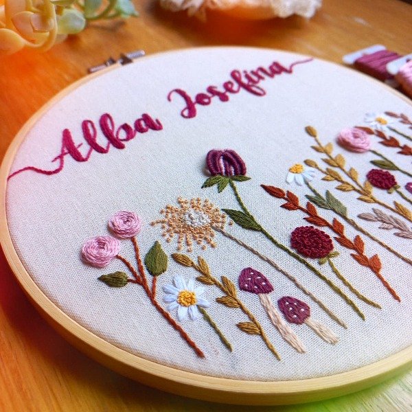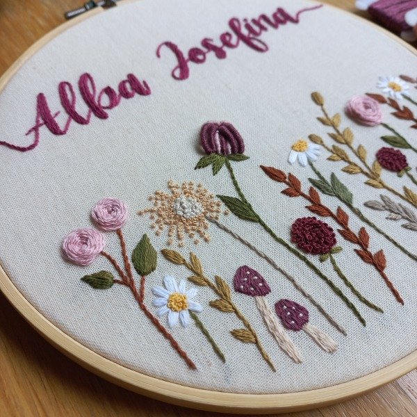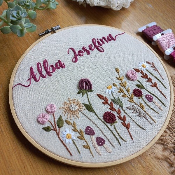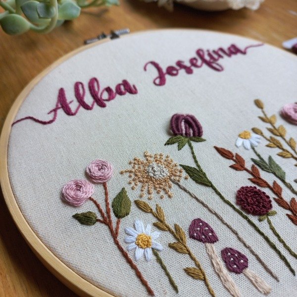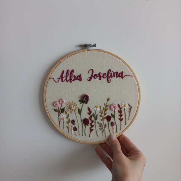 ACLARACIÓN IMPORTANTE: El trabajo es artesanal por lo tanto no hay dos bordados exactamente iguales, por ejemplo a veces puede variar el tono de los hilos o lanas, algún punto de bordado, el color de la pintura, algún detalle del diseño, etc.