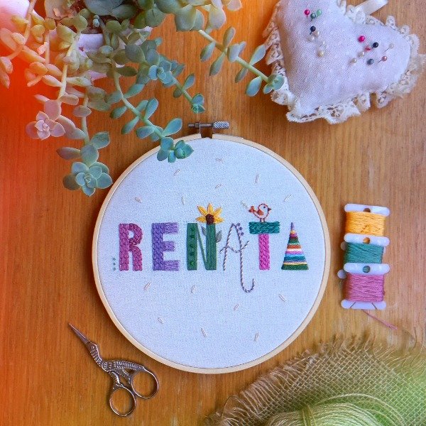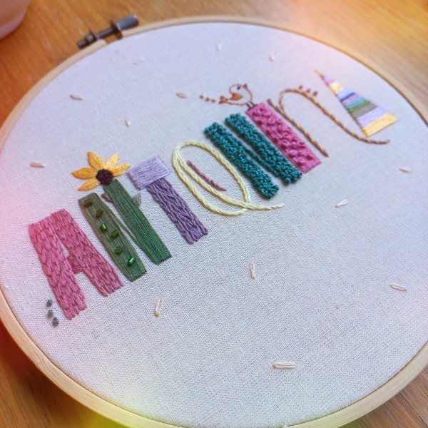 ACLARACIÓN IMPORTANTE: El trabajo es artesanal por lo tanto no hay dos bordados exactamente iguales, por ejemplo a veces puede variar el tono de los hilos o lanas, algún punto de bordado, el color de la pintura, algún detalle del diseño, etc.