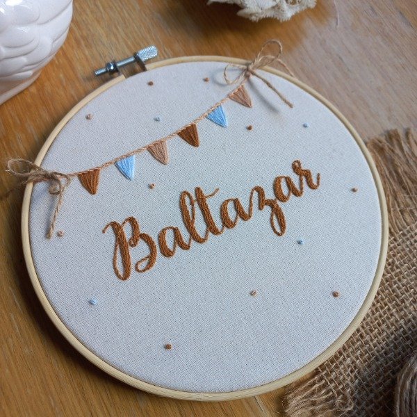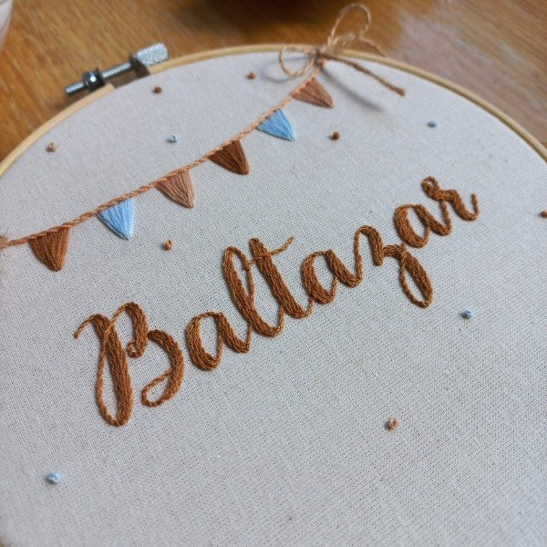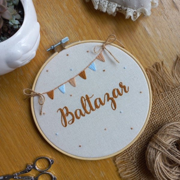 ACLARACIÓN IMPORTANTE: El trabajo es artesanal por lo tanto no hay dos bordados exactamente iguales, por ejemplo a veces puede variar el tono de los hilos o lanas, algún punto de bordado, el color de la pintura, algún detalle del diseño, etc.