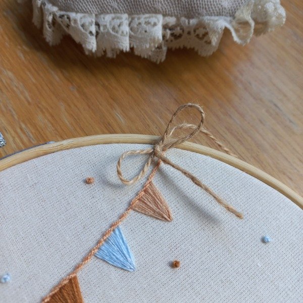 Cuadrito bordado a mano con hilos de algodón, y montado en bastidor de 18 cm.