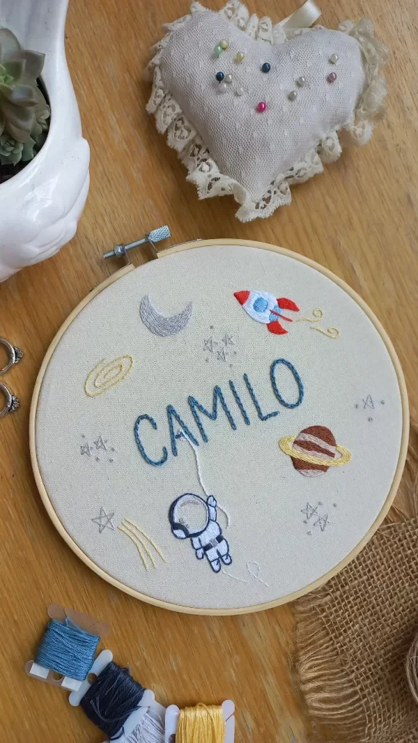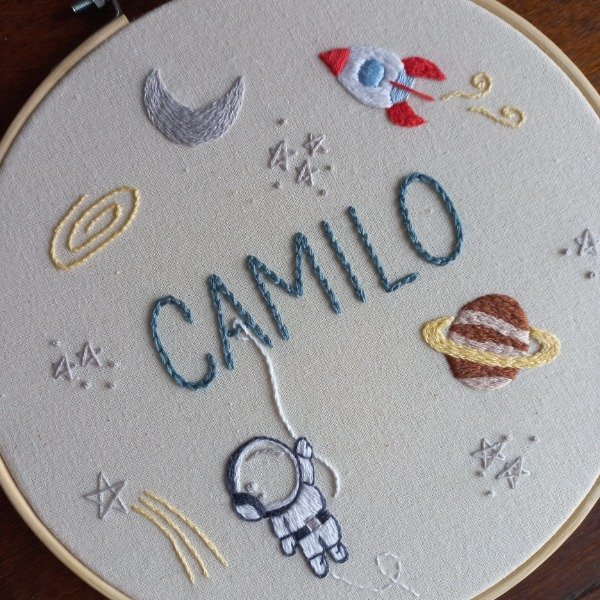 ACLARACIÓN IMPORTANTE: El trabajo es artesanal por lo tanto no hay dos bordados exactamente iguales, por ejemplo a veces puede variar el tono de los hilos o lanas, algún punto de bordado, el color de la pintura, algún detalle del diseño, etc.