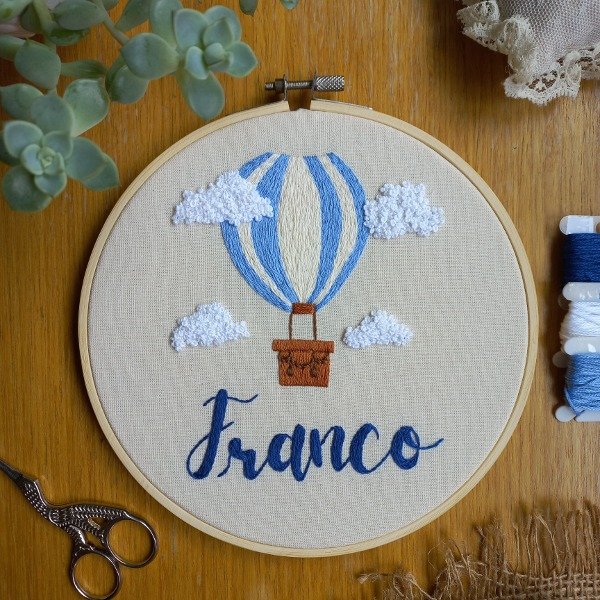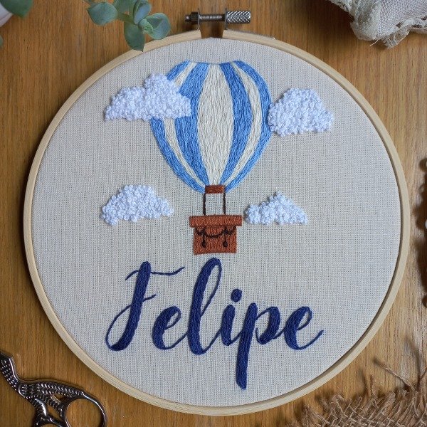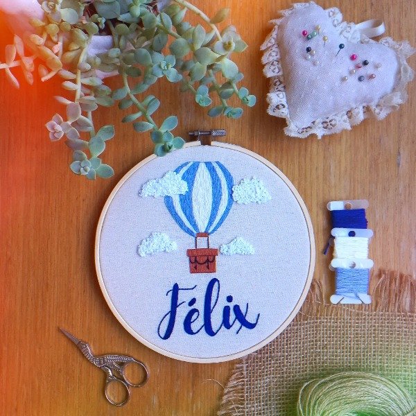 ACLARACIÓN IMPORTANTE: El trabajo es artesanal por lo tanto no hay dos bordados exactamente iguales, por ejemplo a veces puede variar el tono de los hilos o lanas, algún punto de bordado, el color de la pintura, algún detalle del diseño, etc.