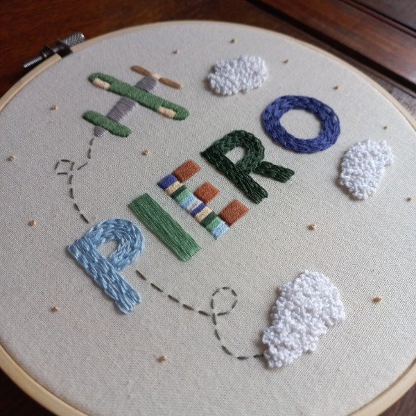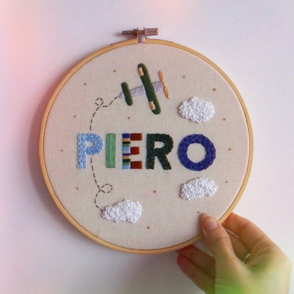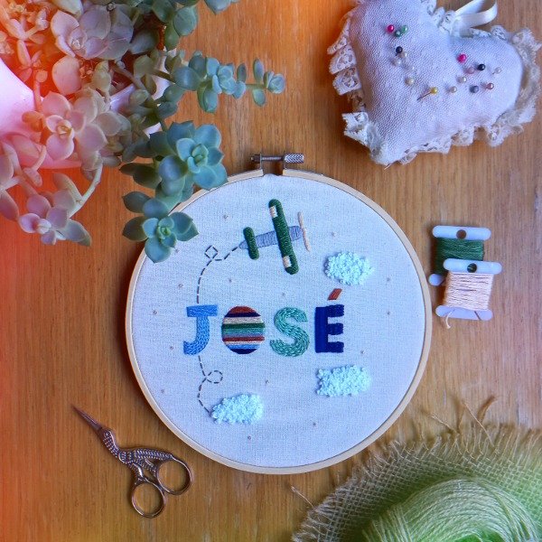 ACLARACIÓN IMPORTANTE: El trabajo es artesanal por lo tanto no hay dos bordados exactamente iguales, por ejemplo a veces puede variar el tono de los hilos o lanas, algún punto de bordado, el color de la pintura, algún detalle del diseño, etc.
