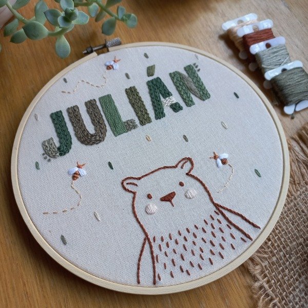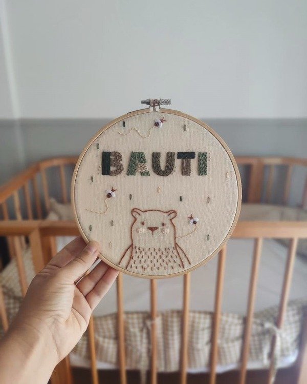 ACLARACIÓN IMPORTANTE: El trabajo es artesanal por lo tanto no hay dos bordados exactamente iguales, por ejemplo a veces puede variar el tono de los hilos o lanas, algún punto de bordado, el color de la pintura, algún detalle del diseño, etc.